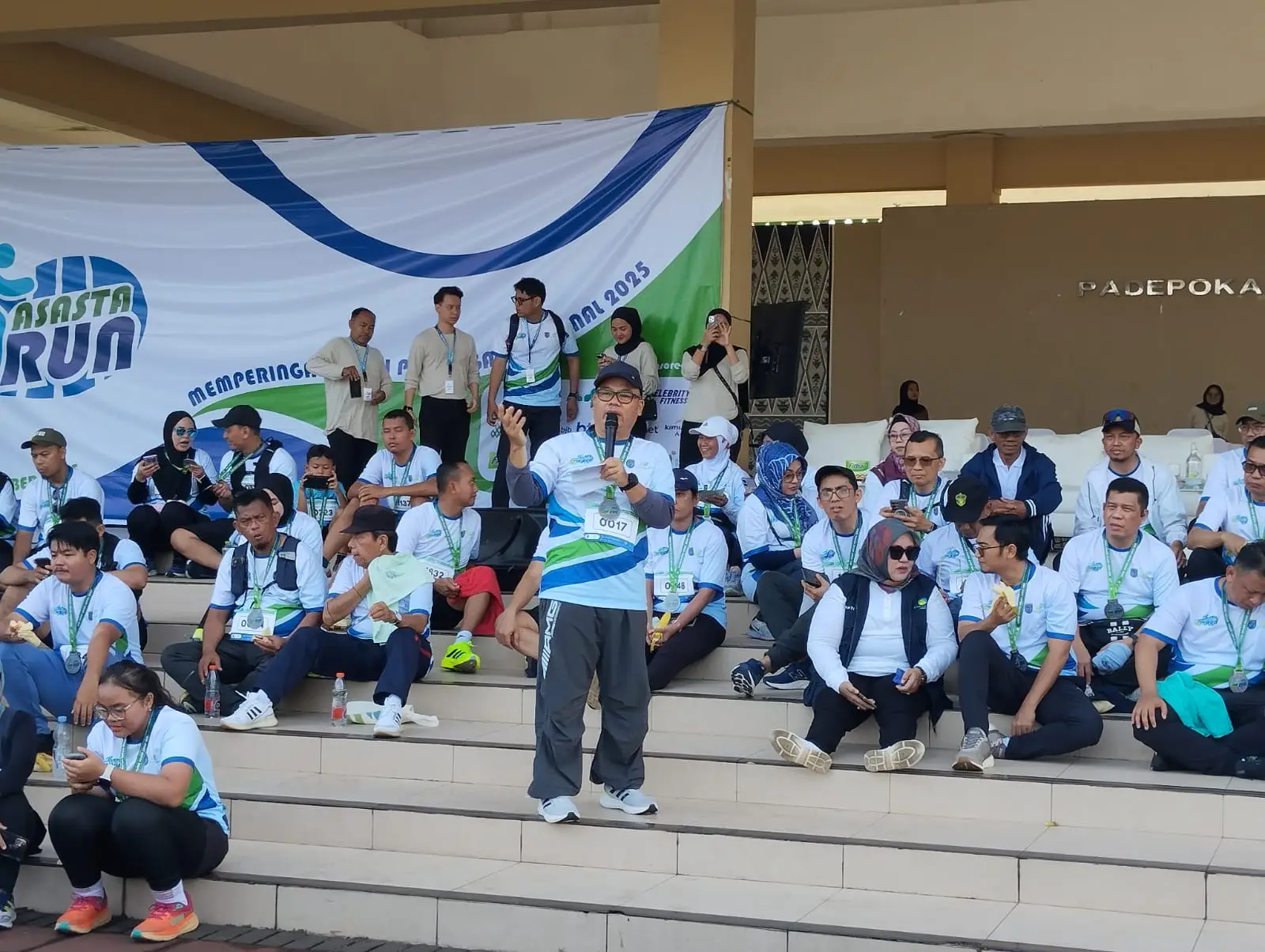 Direktur Utama PT Tirta Asasta Depok, M. Olik Abdul Holik menyapa peserta Fun Run 2025. (Foto: Diskominfo)